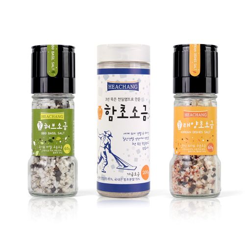 해창소금 구운소금 태양초+허브 캠핑용 그라인더 2종 +함초소금 180g 선물세트 1호