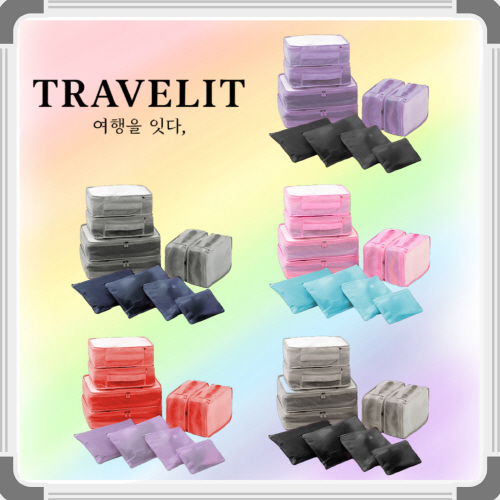 [트래블잇] 내맘대로 8컬러 믹스 여행용파우치 10종세트 캐리어정리 실속구성10P