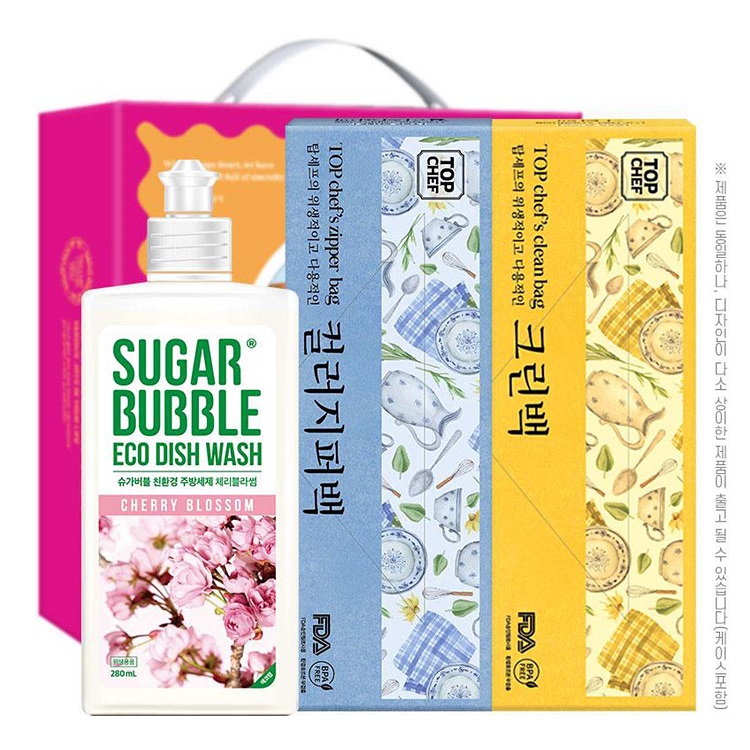 슈가버블 주방세제280용기 컬러지퍼백 크린백 3종세트