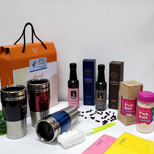 [선물세트 6종] 핑크소금 핑크솔트 커피 텀블러 머그컵 행주 세척솔