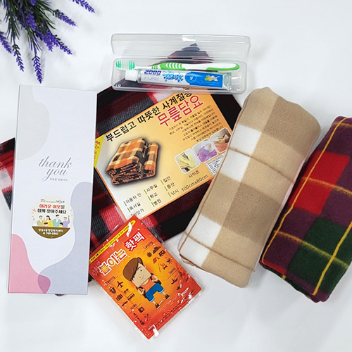 [선물세트 6종] 담요 무릎담요 핫팩 손난로 2080치약 칫솔