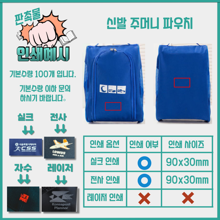 최소수량미만 제작가능여부 상담 문의 인쇄방법 실크,전사 인쇄 제품재질 상세페이지 참조 제품크기 상세페이지 참조